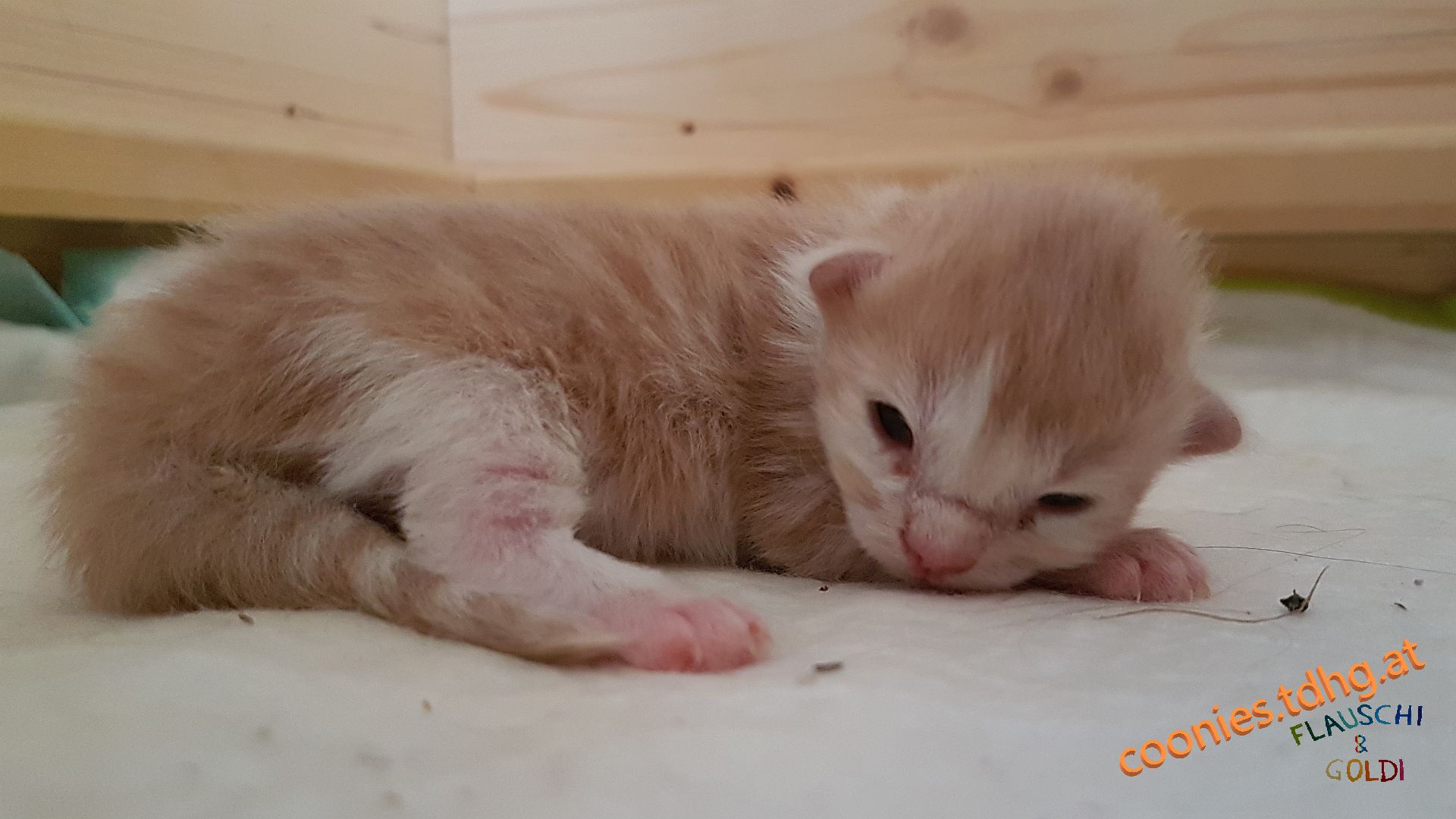 Ich schaue meiner Oma sehr ähnlich, daher mein Name Goldi. Mit 116g war ich der Leichteste bei der Geburt.